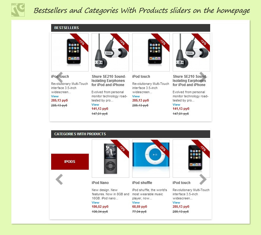 Prestashop Home Carousel allows you to draw attention of your potential customers to your products. One of the main design trends in internet stores, homepage sliders is a tried and effective way to increase sales, not to mention site’s improved usability. The module has several sliders to choose from and add to the homepage: Categories, New and Featured products, Bestsellers and Items on sale. Products are added to the New, Featured and Bestselling sliders automatically. You may select one carousel or many sliders to be displayed at once.