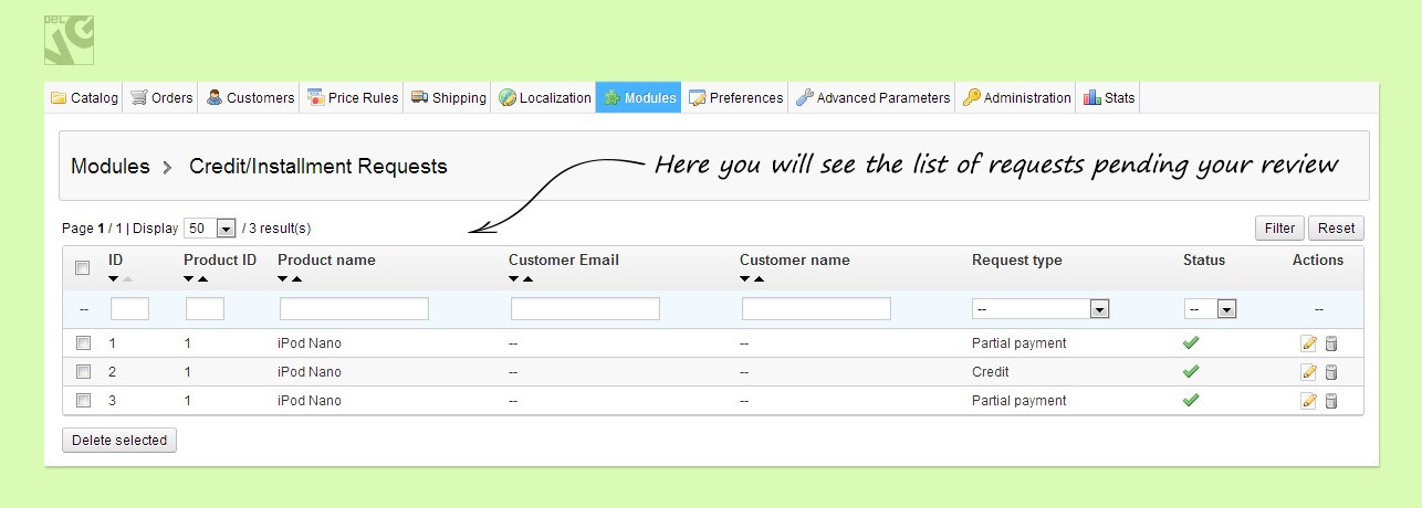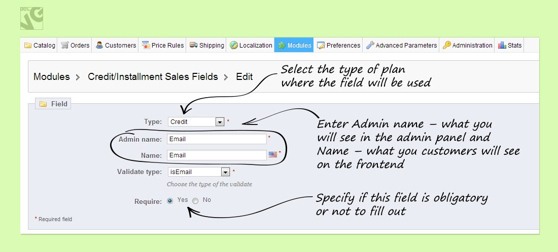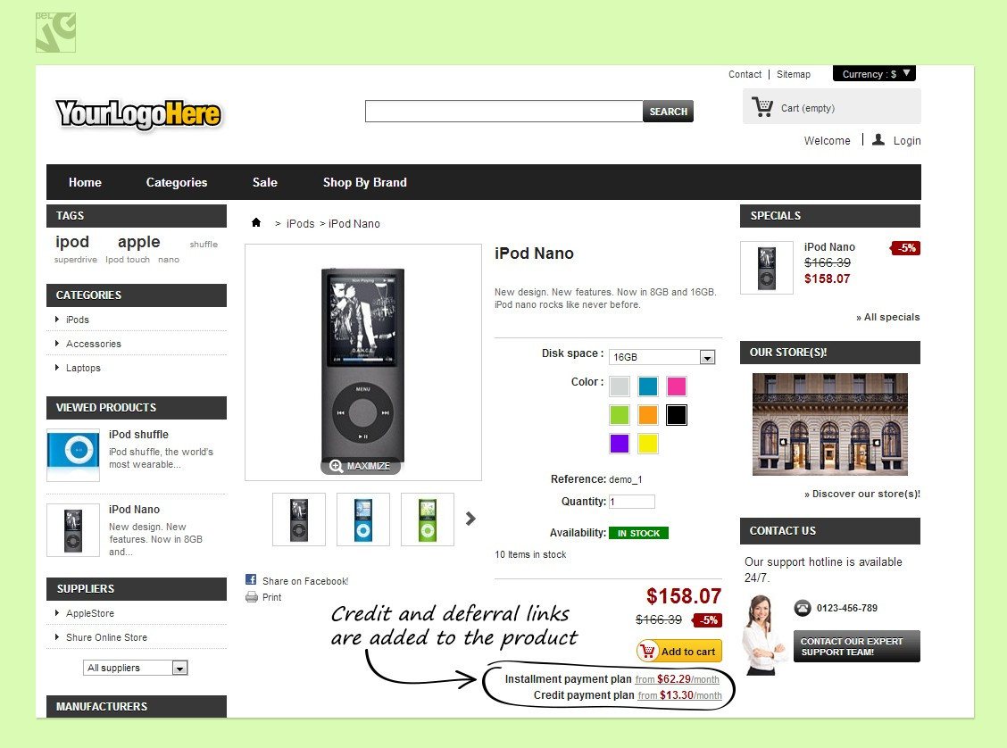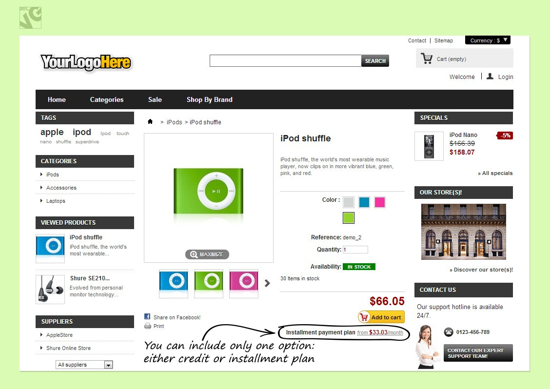 Prestashop Installment and Credit Sales module gives you the ability to grant credits and accept deferred payments for any product in your shop product list. With this extension you can assign a credit/installment payment plan for every specific product, thus making the offer available to certain customers.