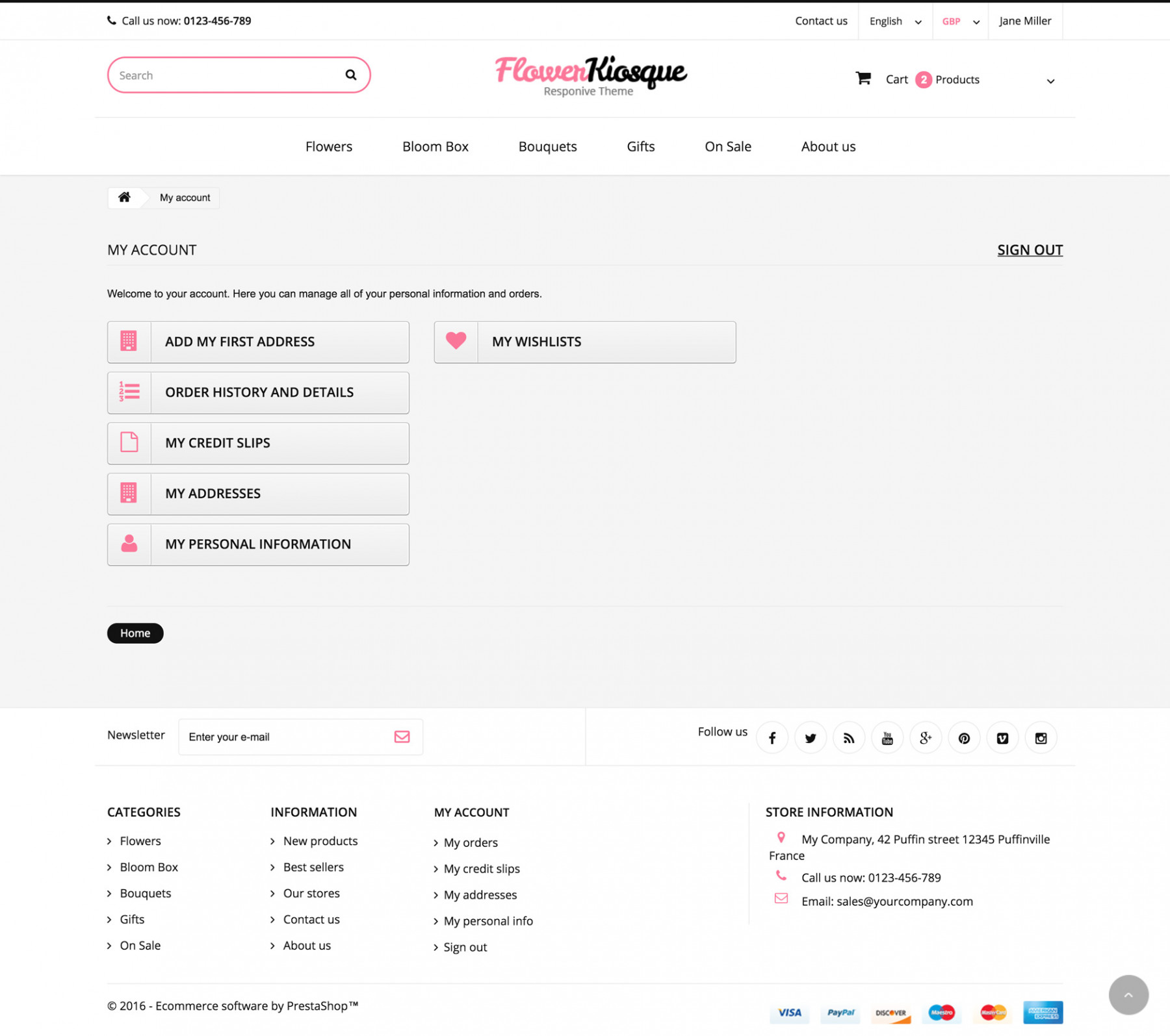 This theme is visually glorious and it has very rich functional at the same time. Represent your best offers and new arrivals on a big slider and beautiful gallery on the homepage. Customers can easily look through the products with quick view option. Extended filter in catalog will help your customers find the right bloom box or flower bouquet that will be ideal surprise for loved ones. With a help of rating and reviews option on a product page your customers can simply share their opinions about your product. Flower Kiosque Theme will make your webstore look perfect, professional and reliable. Besides, responsive template allows your webstore quickly shape up to any device with any screen size and format. All of the blocks are flexible, whether it is a text or images, everything could be perfectly adapted to required screen. Take your sales to the next level with awesome appearance and functionality.