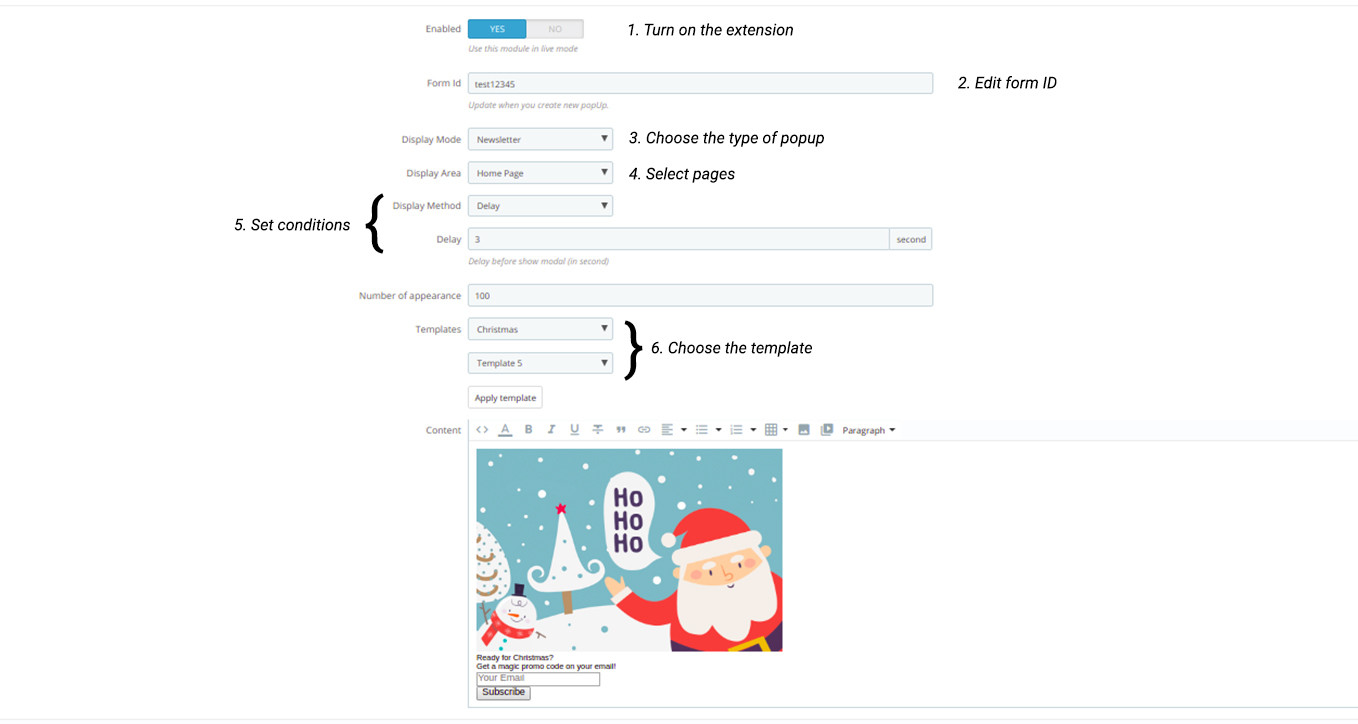 For every of this holiday we prepared multiple stylized backgrounds and 3 advertising campaign options. You also'll receive a packet with universal backgrounds as a bonus. Clear configurations allow to customize the popup as you want and make it more suitable with your online store design and discount policy.