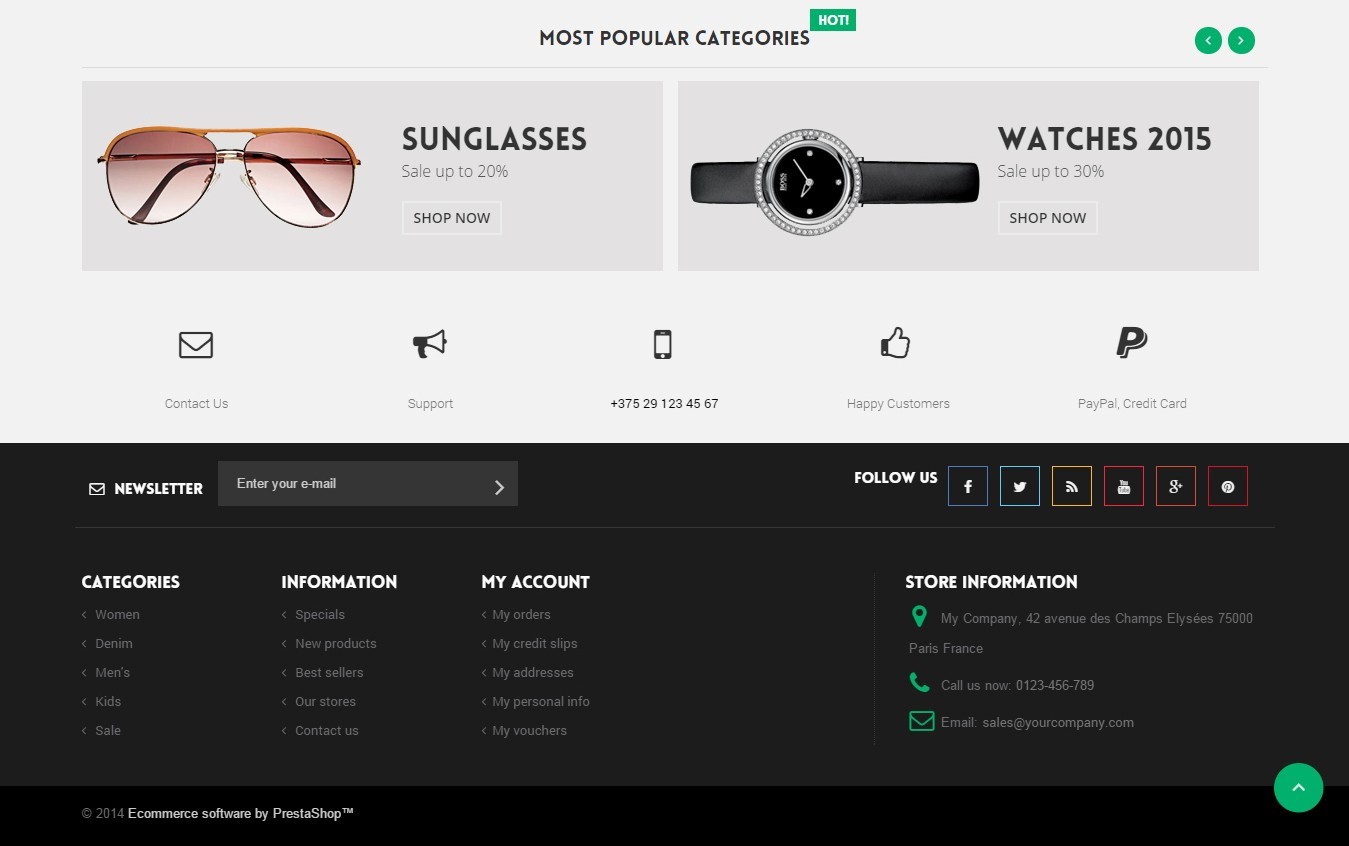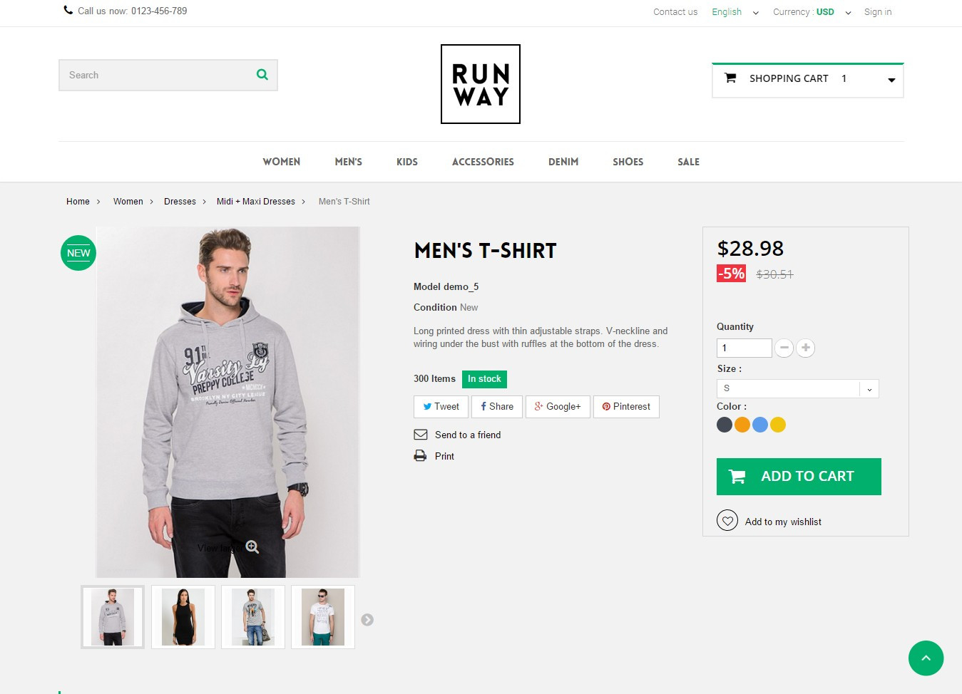 Runway Prestashop 1.6 Template is coded by certified professionals for your comfort and store growth. Inbuilt functional extensions like: Homefeatured slider on homepage, Static blocks module and Scroll Top module.
