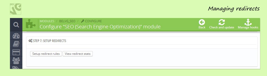 With a few clicks you will be able to set up correct redirects and check for broken links.