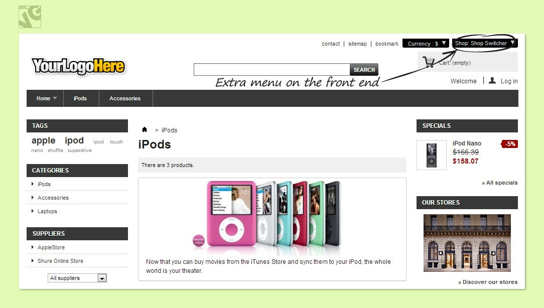- Shop switcher navigation tool